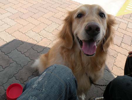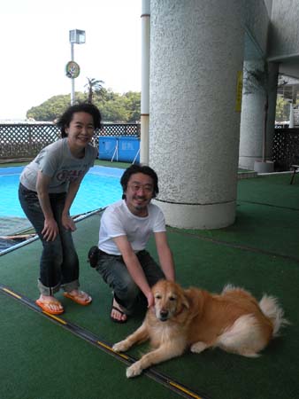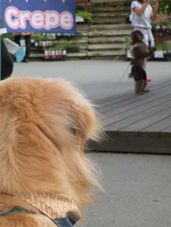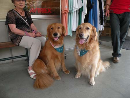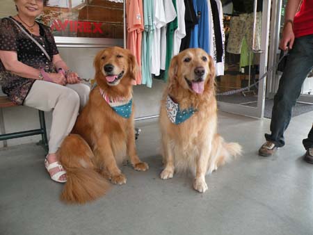 たくさんの人ごみのなかでも、お利口さんなももちゃんとバディくん。