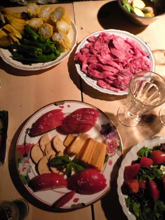 ピーマン、トウモロコシ、そしてまたニジマス、お肉~~~♪