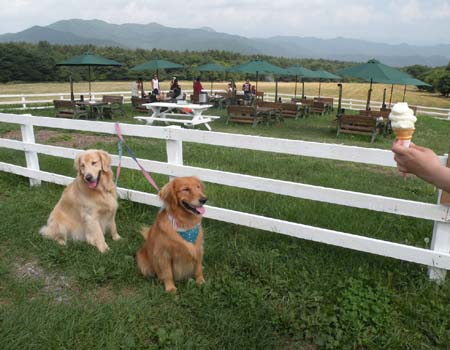 ここでも、ソフトクリームに激しく反応するももちゃんと、対照的に無関心なバディ男くん(笑