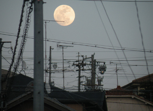 ちょっと寒すぎたね。こんどの月曜日に期待しよう!この月の写真はイイね。電線や電柱が妙にアートっぽい!