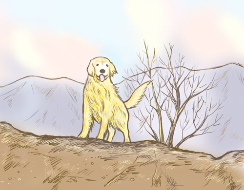 夕焼けの空をバックに山の上から「ハル~はやく登っておいでよ!」って言ってるのです。