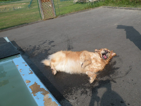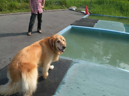 あら~!?自分からプールに向かって走っていくけど・・・
