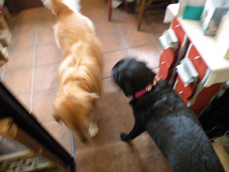 激喜び!!のマフィンと、相変わらず激しいお出迎えのアウラくん&ニキちゃん(笑