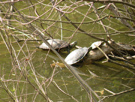 かわりにいたのは・・・甲羅干しのミドリガメさん達でした。